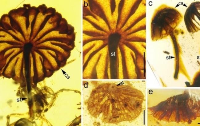 Палеонтологи обнаружили грибы, очень напоминающие современные мухоморы, в янтаре возрастом 99 млн лет. Об этом сообщается на сайте Китайской академии наук.