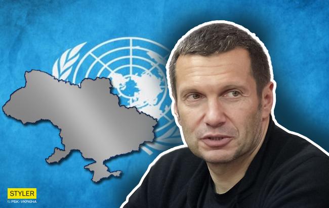 На росТВ Украине предложили выйти из ООН, поскольку в момент присоединения к организации наша страна не была государством. Об этом заявил ведущий пропагандисткой программы "Вечер с Владимиром Соловьевым" на телеканале "Россия 1".