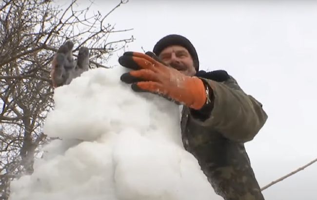 Житель Черкасской области делает скульптуры из снега (фото: скриншот с видео)