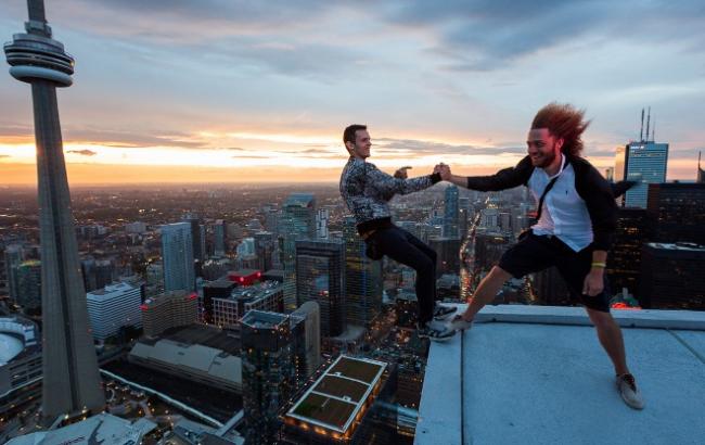 "Сижу я вчера на одной крыше в центре Торонто, пью вино и жду закат... Как вдруг на крышу поднимается какая-то малолетняя гопота. Сначала подумал, школьники привели девчонок полюбоваться закатом в надежде на поцелуй в прыщавую щеку. И тут слышу русскую речь. Оборачиваюсь, а там Виталий Раскалов! Да, тот самый безбашенный чувак, который забирается на самые невероятные крыши по всему миру. Вот так встреча", - написал он.