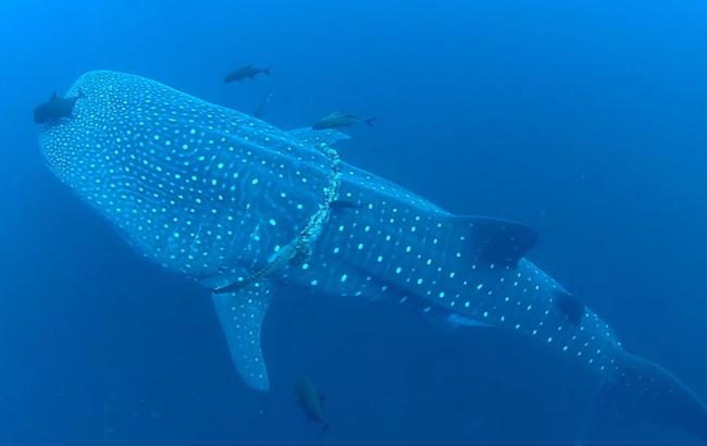 Огромная китовая акула позволила водолазу освободить ее от сетей