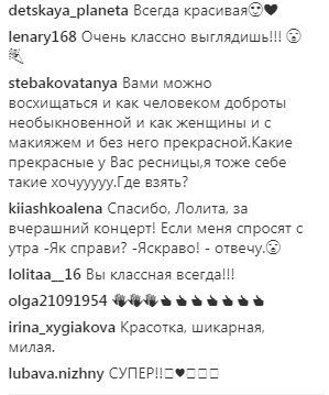 Доказательством слов певицы служит ее селфи, на котором она выглядит естественно и очень привлекательно. Поклонники артистки усыпали Лолиту приятными комплиментами и отметили, что она "всегда красивая".
