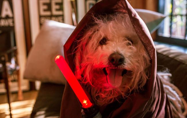 Фото: Собака по імені Бисть з червоним світловим мечем