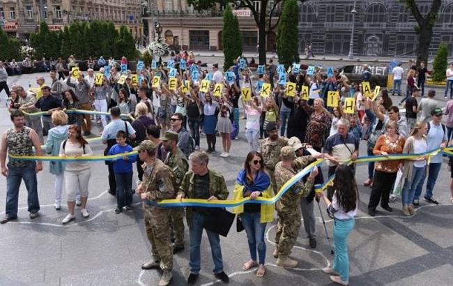 Фото: Флешмоб до 26-ї річниці проголошення суверенітету України у Львові (zik.ua)