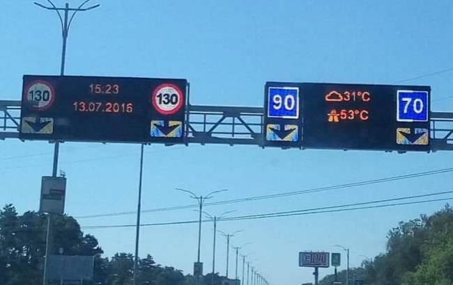 У середу, 13 липня, у Києві на одній з великих доріг міста температура асфальту після трьох годин дня склала +53°С. Такі дані були відображені на інформаційному табло, розміщеному над дорогою. Відповідне фото опублікував на своїй Facebook-сторінці блогер Влад Антонов.