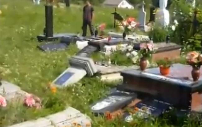 Вандал понівечив могили на кладовищі в селі Лютовіска Старосамбірського району Львівської області в ніч на 2 серпня, повідомляє ТСН.