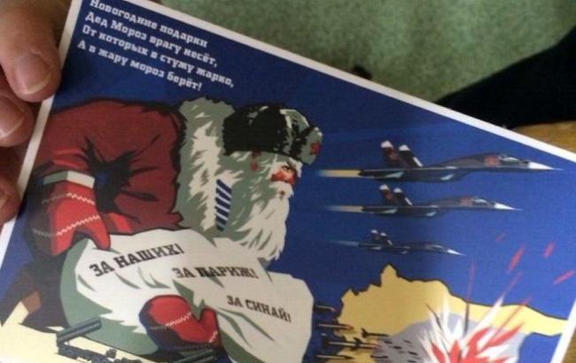 "Новорічні подарунки Дід Мороз ворогові несе, від яких в холоднечу жарко, а в спеку мороз бере!", - написано на листівках.